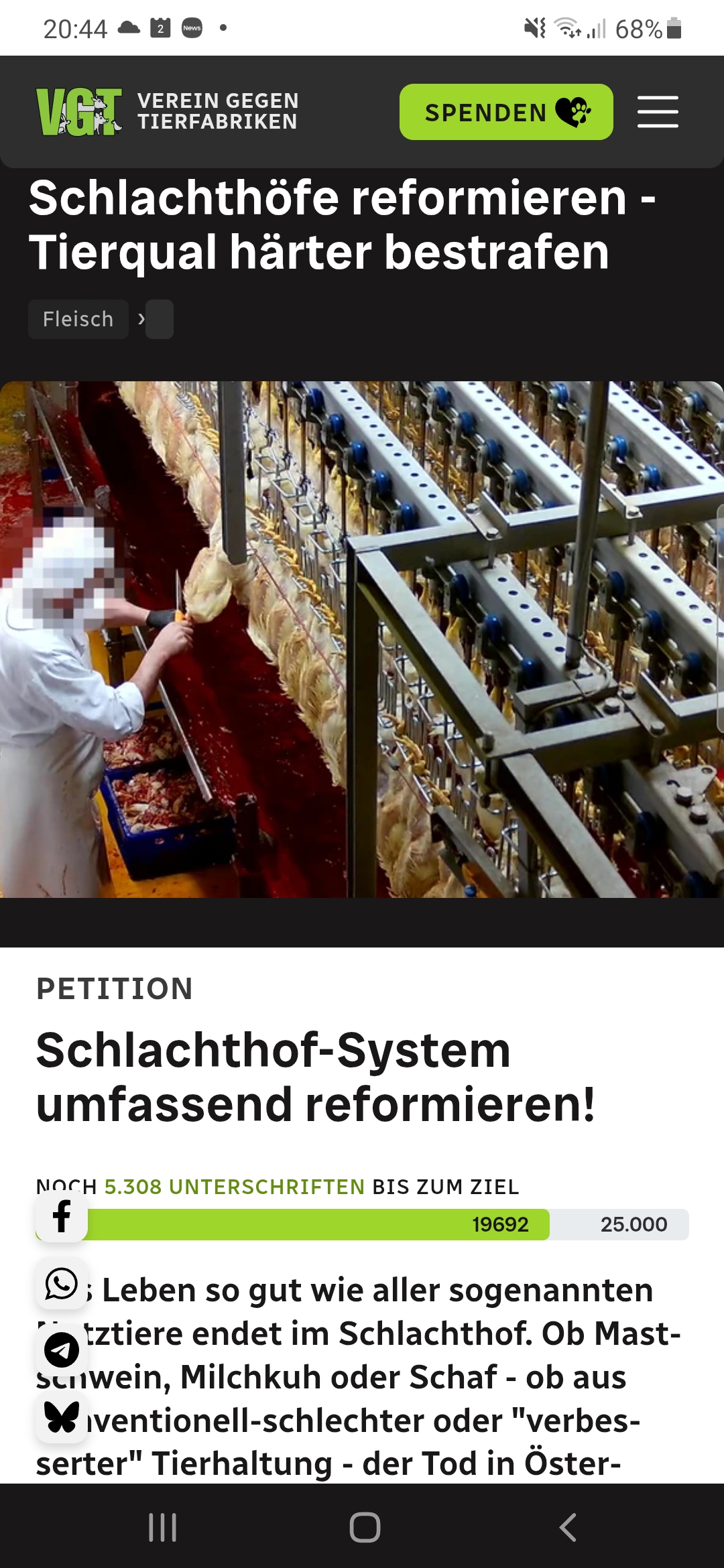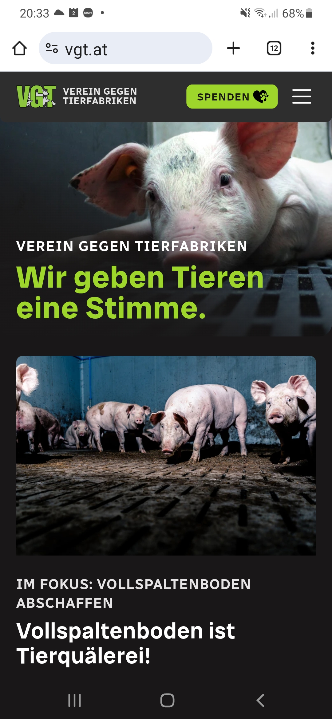auch Jane Goodall meinte... auch in Fehring gibt es Tierfabriken... auch du hast die Wahl... -------- Originalnachricht -------- Betreff: 🐤🐮 Feiern wir gemeinsam Welttierschutztag! Datum: 02.10.2025 19:26 Von: VEREIN GEGEN TIERFABRIKEN <vgt@vgt.at> An: Dich LIEBE/R/S... ! Am 4. Oktober feiern wir den Welttierschutztag! Es ist der Tag, an dem wir Tiere in den Mittelpunkt stellen und den wir uns gemeinsam zum Anlass nehmen, aktiv etwas für sie tun! Tiere sind keine gefühllosen Nutzobjekte, so wie sie leider noch von vielen behandelt werden, sondern LEBEWESEN mit Bedürfnissen. Sie empfinden Freude, Schmerz, Angst und Zuneigung. Doch noch immer müssen sie in unserer Gesellschaft leiden: Viele verbringen ihr Leben eingesperrt auf engstem Raum, müssen auf harten Vollspaltenböden über ihrem eigenen Kot stehen, werden in Tierversuchen missbraucht, ihrer Haut und ihres Fells beraubt, wie am Fließband getötet. Setzen wir ... gemeinsam ein Zeichen! An dieser Stelle ein herzliches Dankeschön für Ihre Unterstützung. Nur durch Menschen wie Sie ist es uns möglich, auch morgen unsere Arbeit für den Tierschutz fortzusetzen. Natürlich freuen wir uns, wenn Sie den Welttierschutztag als Anlass nehmen, uns mit einer zusätzlichen Spende zu unterstützen. 💚 WIR DECKEN AUF. WIR ZEIGEN AN. WIR BRINGEN TIERLEID AN DIE ÖFFENTLICHKEIT! Seit den 1990er-Jahren setzt sich der VGT unermüdlich für Tiere ein. Wir lassen uns dabei weder von Politik noch von mächtigen Lobbys einschüchtern. Während die Tiernutzungsindustrie mit enormen Werbemitteln Bilder zeigt, die wenig mit der Realität zu tun haben, machen wir sichtbar, wie das Leben der Tiere tatsächlich aussieht. Und das mit ERFOLG! Nur durch unsere jahrelange, beharrliche Arbeit verfügt Österreich heute über so starke Tierschutzgesetze. Das macht uns zu einer internationalen Vorzeige-NGO – und gleichzeitig zur Zielscheibe jener, die vom Leid der Tiere profitieren. Aber wir machen weiter. Trotz Gegenwind, trotz hoher Prozesskosten und trotz des enormen Drucks bleiben wir standhaft für unsere Mitgeschöpfe! Wie Sie bestimmt wissen, kostet unser Einsatz für die Tiere Mut, Ausdauer und Geld. Der VGT erhält keine staatliche Unterstützung, daher wäre all das, was wir bisher erreicht haben, ohne Spenden niemals möglich gewesen. DANKE, DASS SIE MIT UNS AKTIV EINE BESSERE ZUKUNFT FÜR TIERE GESTALTEN! Übrigens: Einmalige Spenden sind großartig – doch regelmäßige Unterstützung ist für uns besonders wertvoll. Sie gibt uns die Sicherheit, langfristig zu planen, Projekte nachhaltig umzusetzen und Tieren kontinuierlich eine Stimme zu geben! Im Namen des VGT bedanke ich mich für Ihre wertvolle Unterstützung! Ihre Jessica Schwarz Fundraising, Illustration & Kommunikation_ VEREIN GEGEN TIERFABRIKEN Meidlinger Hauptstraße 63/6, 1120 Wien ZVR-Zahl: 837615029 Tel: +43 1 929 14 98 www.vgt.at VGT-Newsletter bestellen!